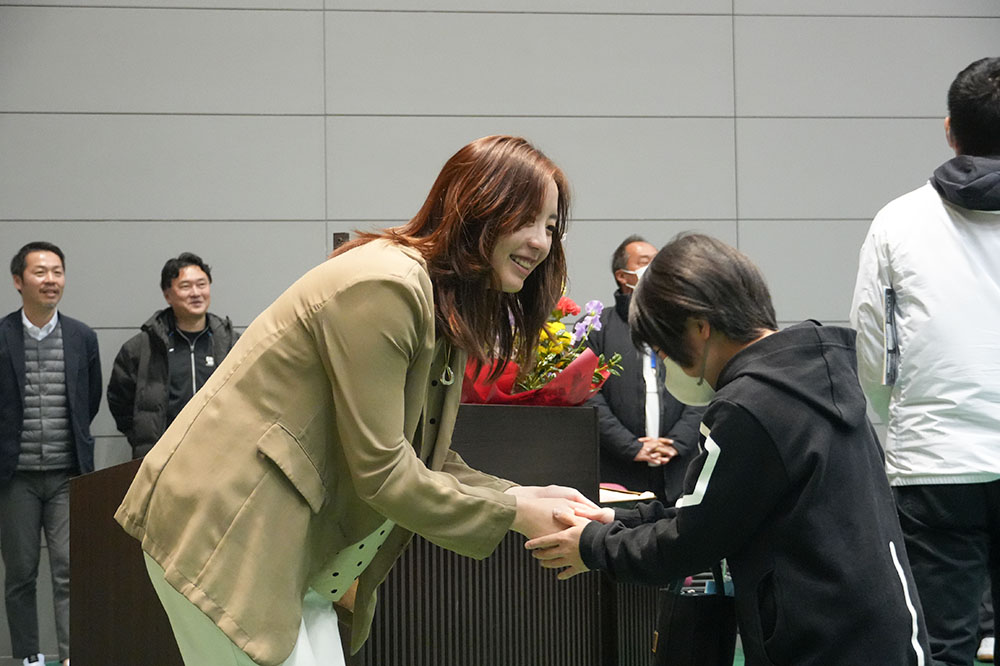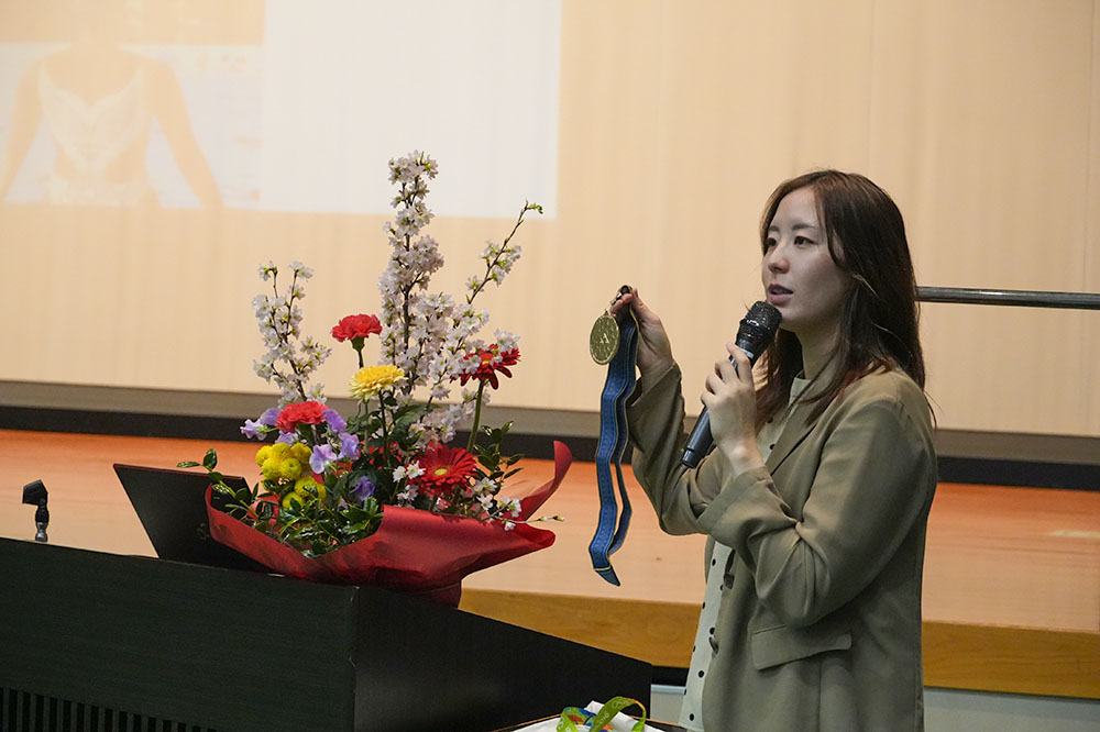 講師に乾友紀子氏(世界水泳選手権2022.2023金メダリスト)を迎え、プロアスリートとしての体験談などを語っていただきました。